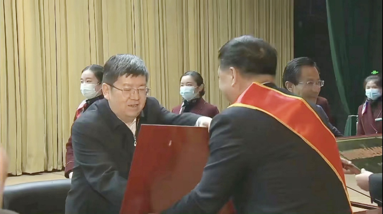 淮南市委書記任澤鋒為安徽德邦公司 頒發“淮南市民營制造業企業稅收貢獻20強”獎牌