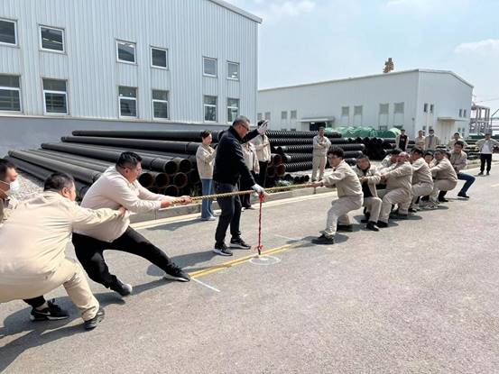 暖風(fēng)攜花開,春意正濃時。為慶祝“五一”國際勞動節(jié),進一步豐富職工的業(yè)余文化生活,全面提振職工精氣神,展現(xiàn)公司全體職工團結(jié)奮進的精神風(fēng)貌,增強全體職工的凝聚力和向心力。4月27日,興華科技公司舉辦“五一”職工拔河比賽,本次活動共10支代表隊參賽。同時為了讓外地的同事一同參與到本次活動中來,還特意組織了《職業(yè)病防治法》有獎線上問答活動。 在拔河活動中,參賽隊員熱情洋溢,興奮地討論著比賽技巧,為比賽出謀劃策。隨著裁判員一聲哨響,拔河比賽正式開始。這是一場團隊精神的比拼,為了集體榮譽,參賽選手凝神聚力,重心下移,勢如猛虎,寸土必爭,以力拔山兮氣蓋世的氣勢,為勝利拼盡全力。在勝負(fù)難分的僵持階段,大家咬緊牙關(guān),握緊韁繩,堅持到底。每一個參賽隊員都全力以赴,為中間漂移的紅繩屏氣懾息。賽場外,啦啦隊富有節(jié)奏的加油聲、吶喊聲、助威聲,充斥在賽場上空,久久回蕩。經(jīng)過緊張而激烈角逐,決出了前四名隊伍。 通過此次活動,不僅讓大家放松了緊張的心情,緩解了工作壓力,而且進一步促進職工以“拔河精神”積極投身到自我凈化、自我完善、自我革新、自我提高的平臺上,投身到勤于學(xué)習(xí)、勇于創(chuàng)新、甘于奉獻、敢于卓越的征途上,投身到不忘初心、不負(fù)韶華、不懼挑戰(zhàn)、不辱使命的“三個德邦”的企業(yè)愿景上。